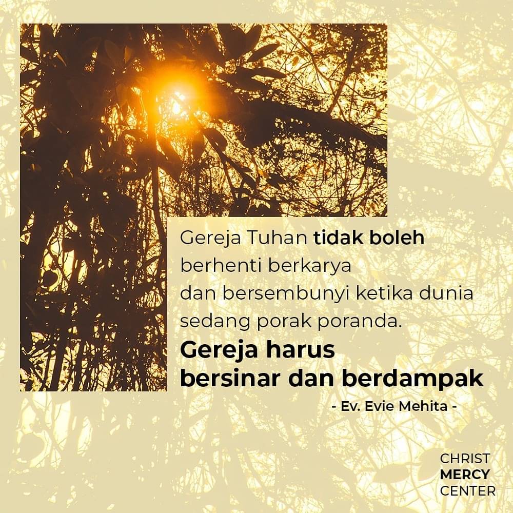 Banyak dari kita yang “stay at home”, tetapi Tuhan mau kita menjadi efektif dan berkarya; Jangan berhenti melayani. Gereja Tuhan tidak boleh berhenti berkarya dan bersembunyi ketika dunia sedang porak poranda. Gereja harus bersinar dan berdampak.
