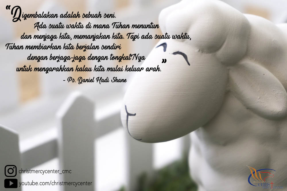 Digembalakan adalah sebuah seni. Ada suatu waktu di mana Tuhan menuntun dan menjaga kita, memanjakan kita. Tapi ada suatu waktu, Tuhan membiarkan kita berjalan sendiri dengan berjaga-jaga dengan tongkatNya untuk mengarahkan kalau kita mulai keluar arah.